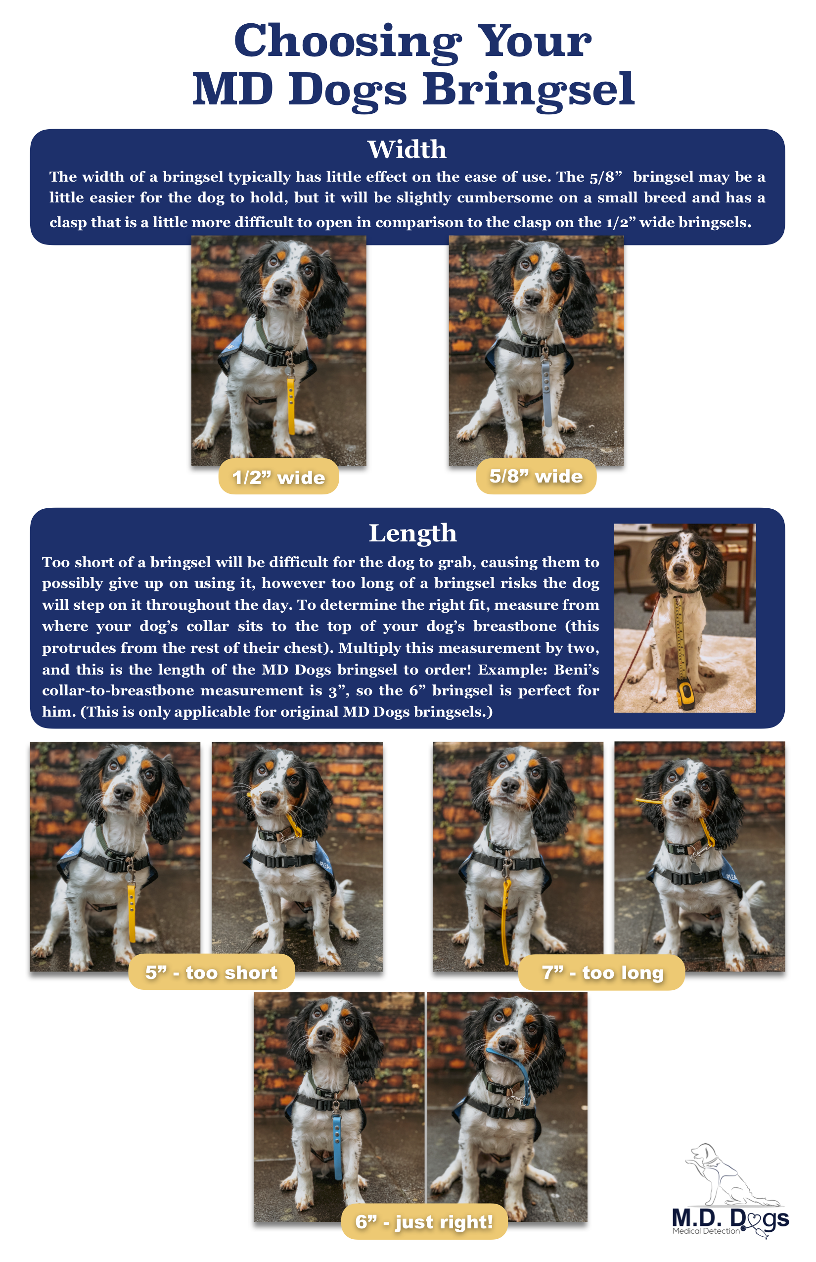 Below are the instructions for choosing your MD Dogs bringsel and measuring for the right one.